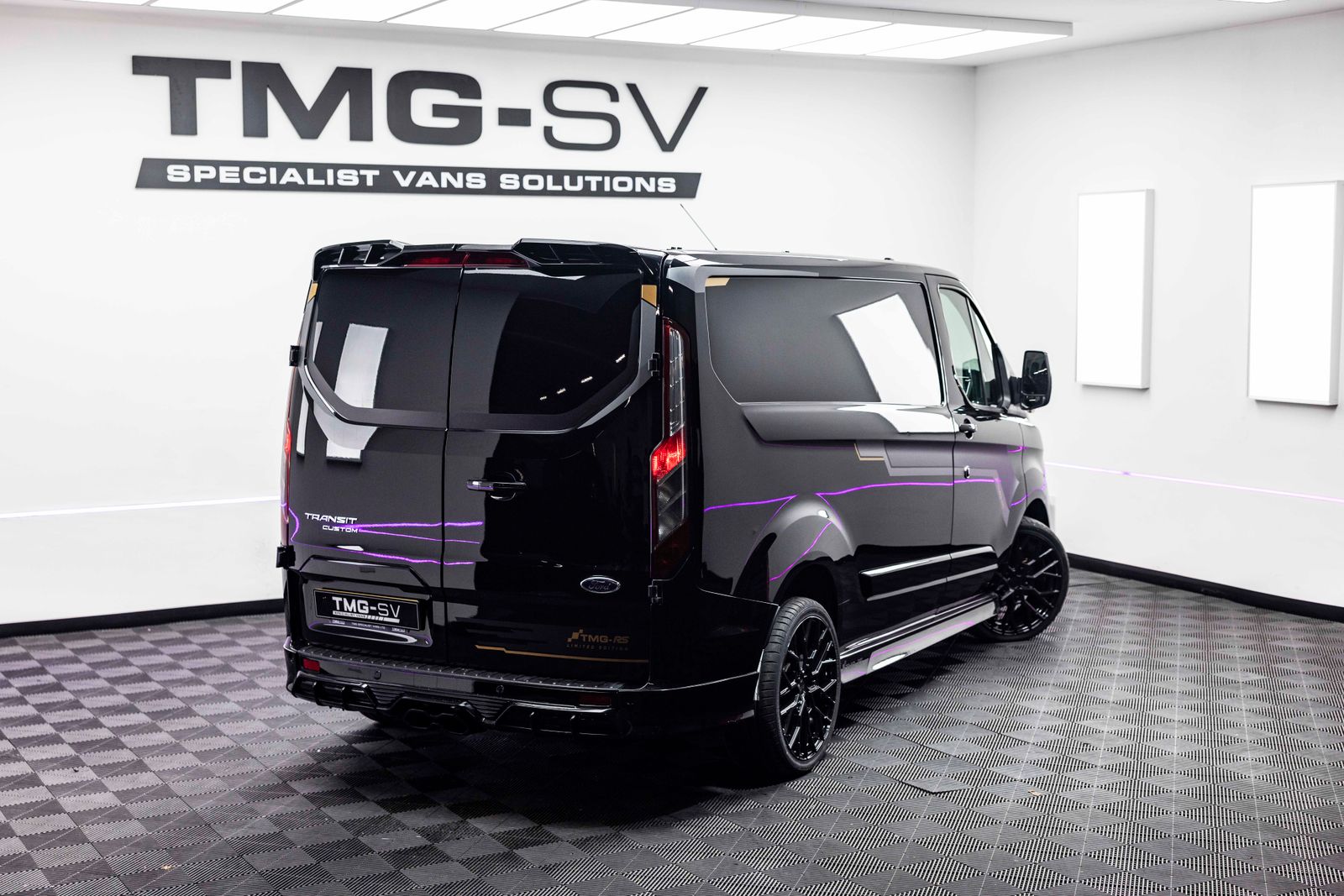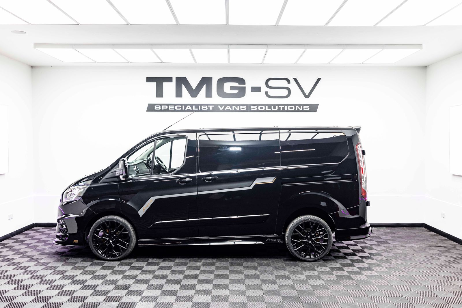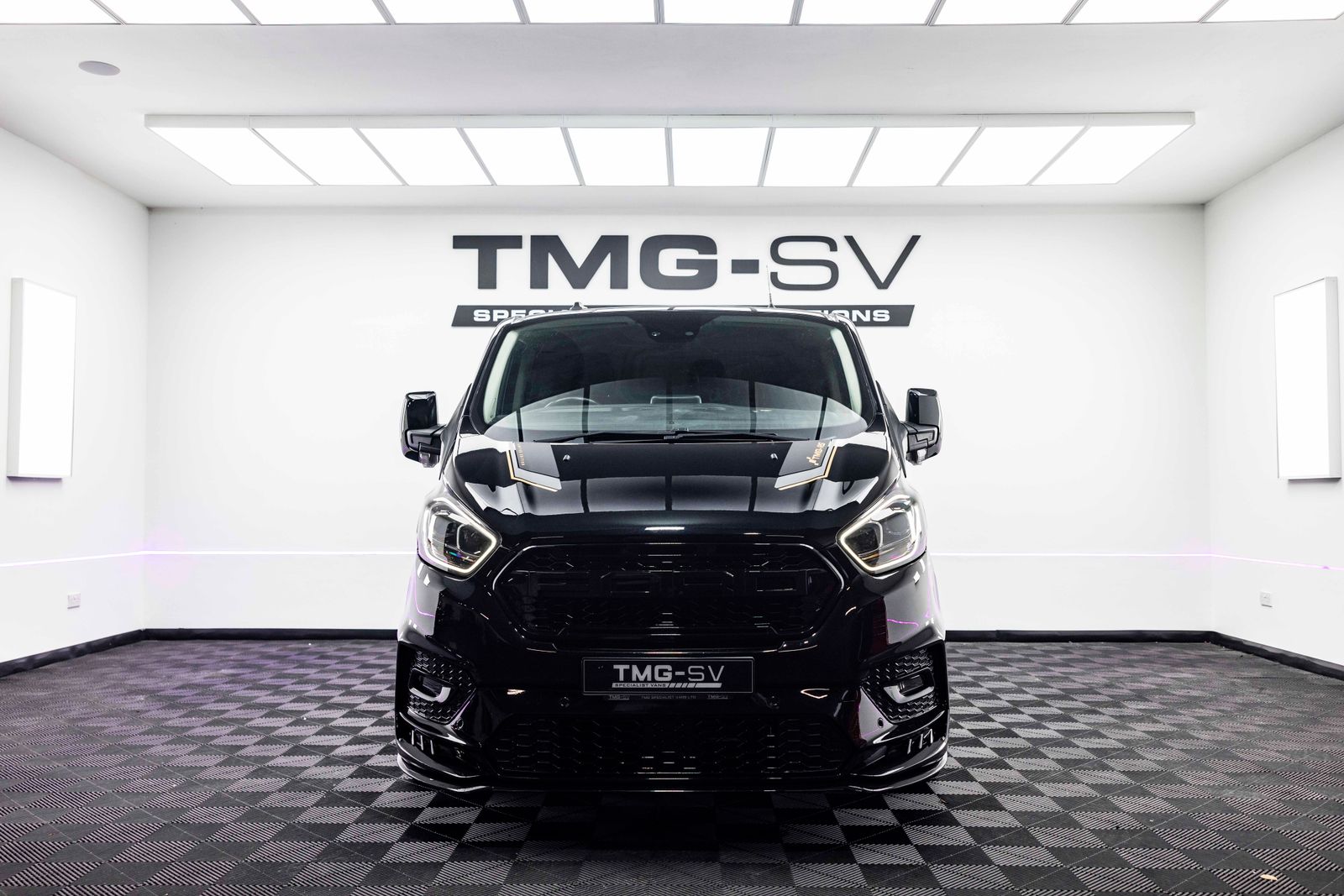 STUNNING!! We are delighted to be offering our latest Custom FORD TRANSIT CUSTOM fitted with our TMG Style pack. Ford Transit Custom 2.0 300 EcoBlue Limited Van 5dr Diesel Manual L1 H1 TMG RS SPORT, finished in AGATE BLACK, with some fantastic extras.