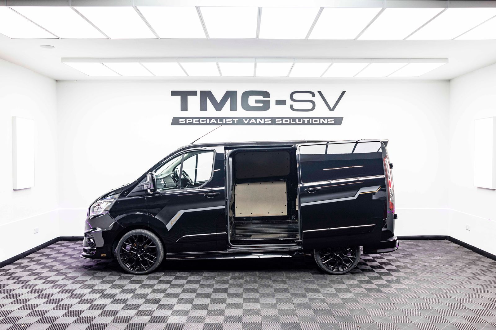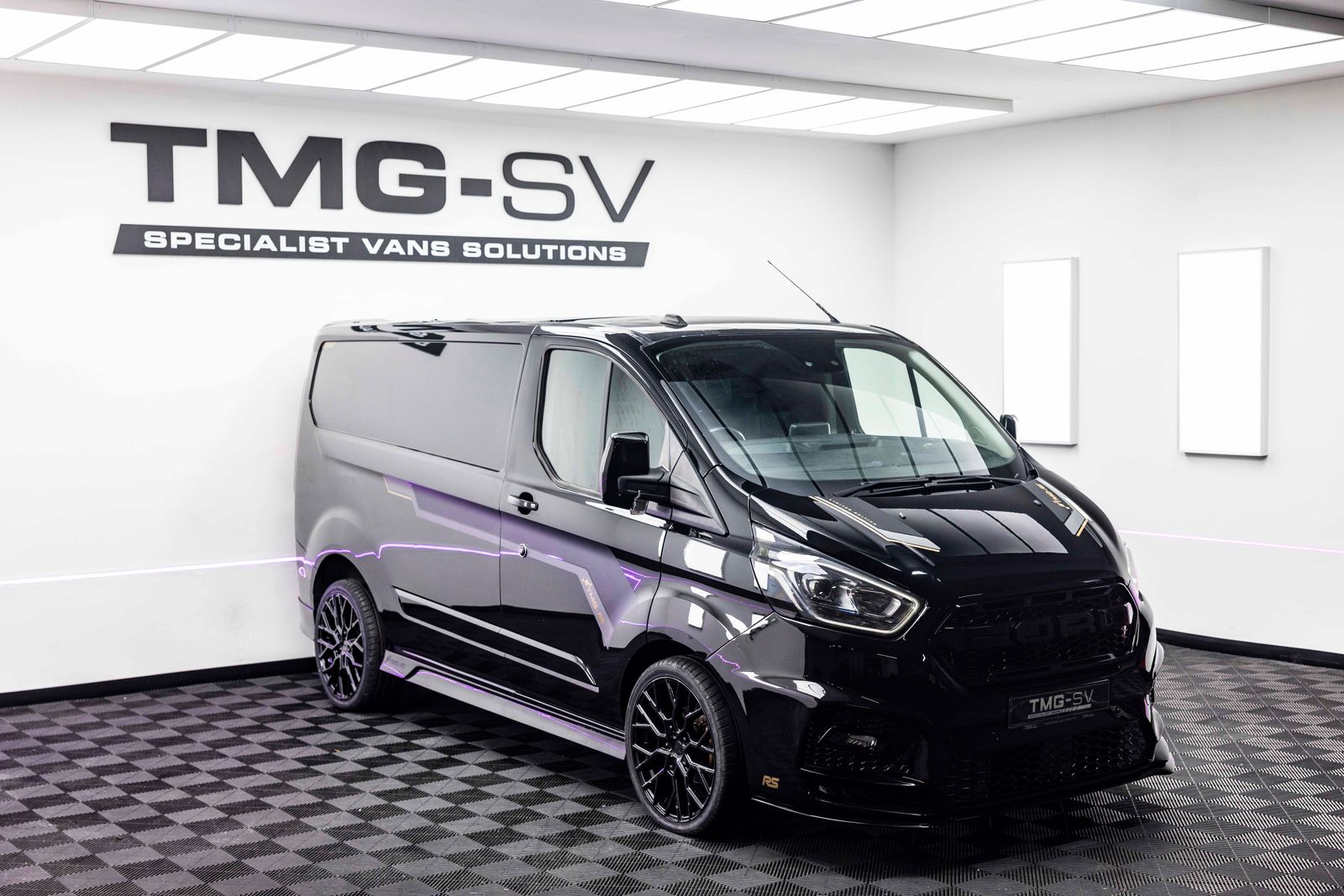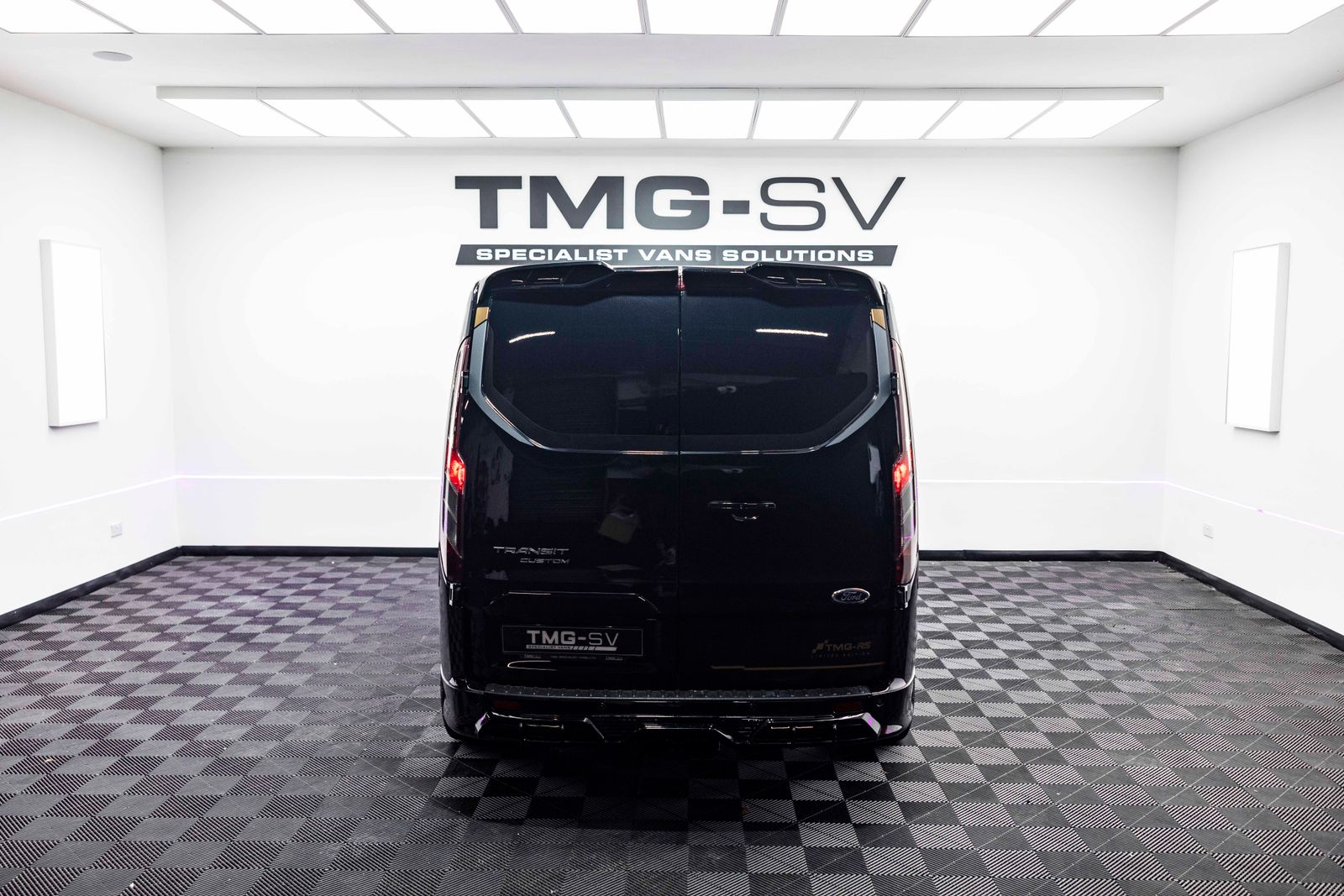 STUNNING!! We are delighted to be offering our latest Custom FORD TRANSIT CUSTOM fitted with our TMG Style pack. Ford Transit Custom 2.0 300 EcoBlue Limited Van 5dr Diesel Manual L1 H1 TMG RS SPORT, finished in AGATE BLACK, with some fantastic extras.