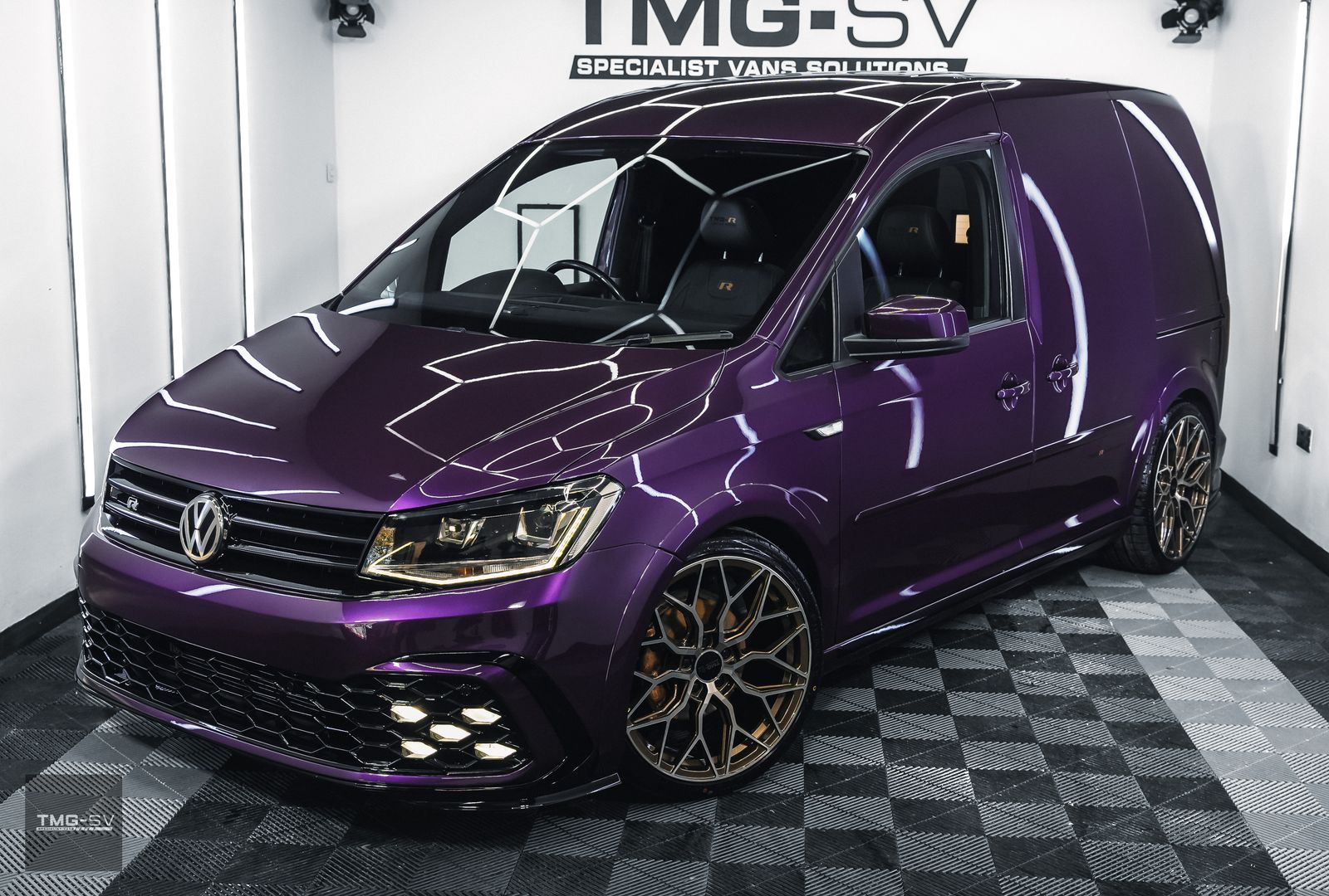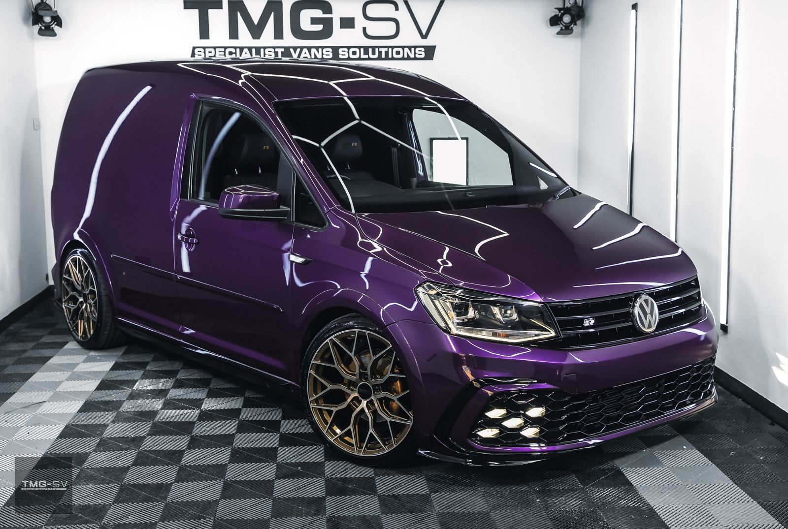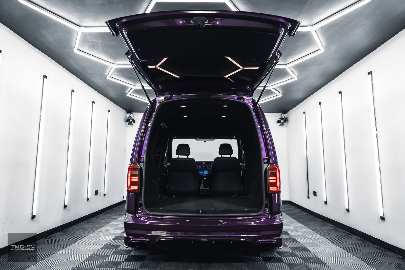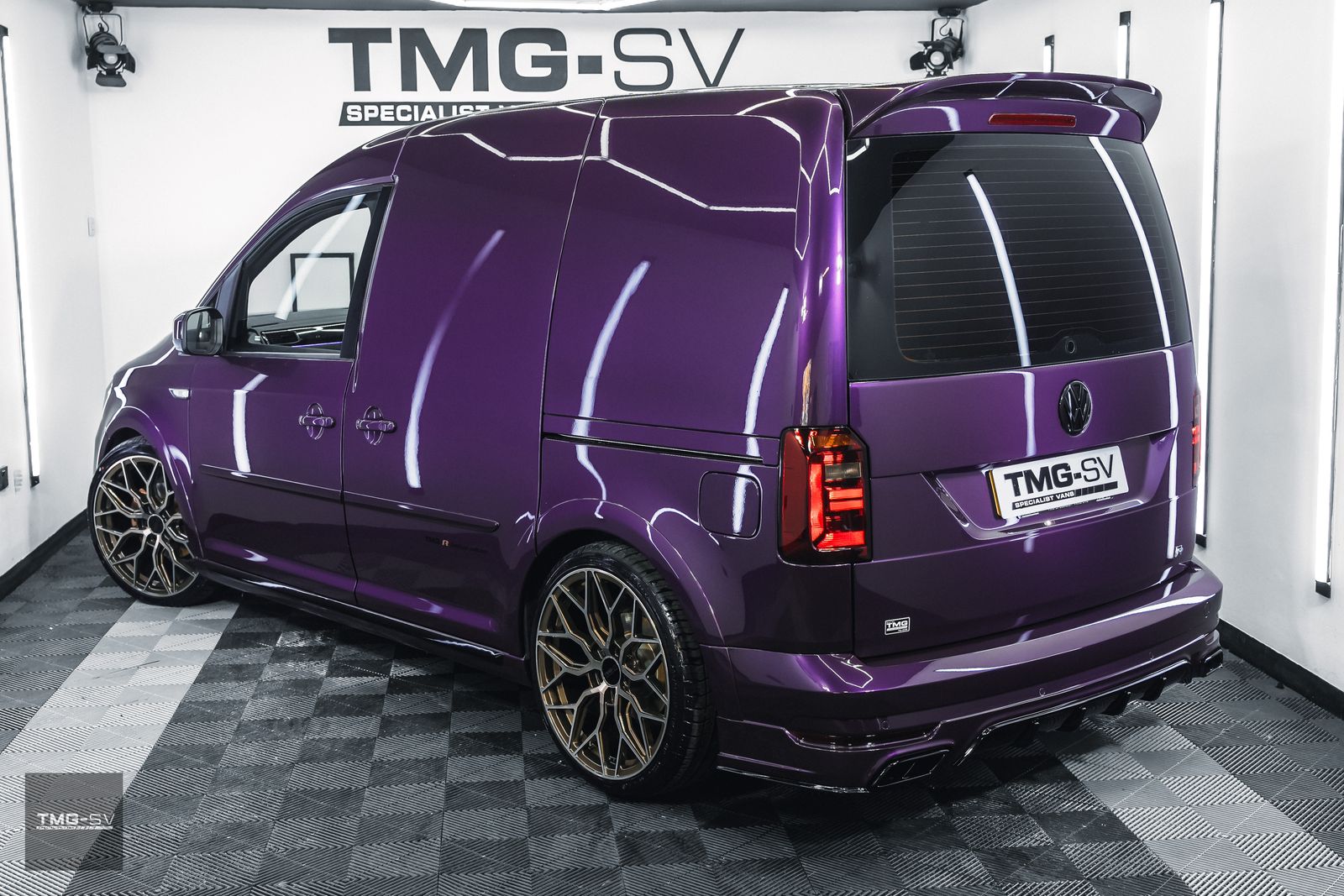 We are delighted to be offering our latest Custom VW Caddy fitted with our TMG Style pack. Volkswagen Caddy 2.0 TDI C20 Blue Motion Tech Euro 6 5dr, finished in purple pearl, with some fantastic extras.