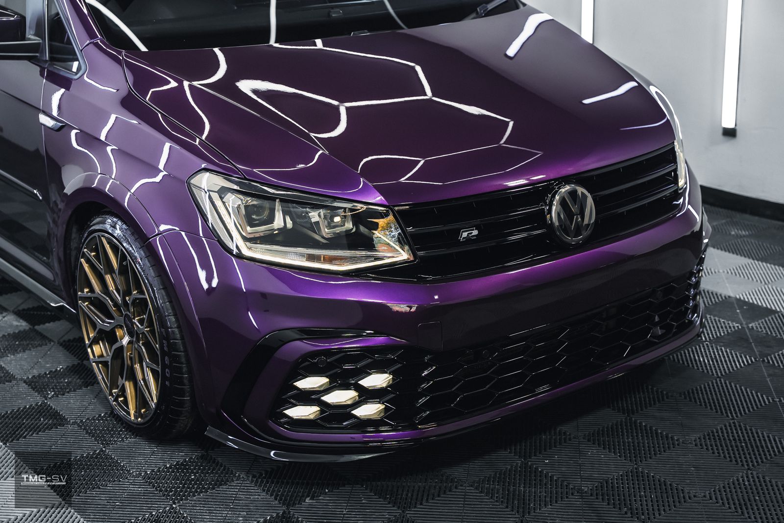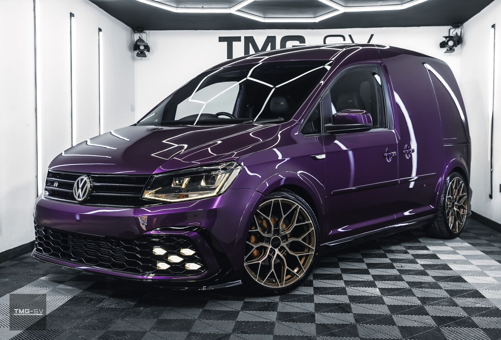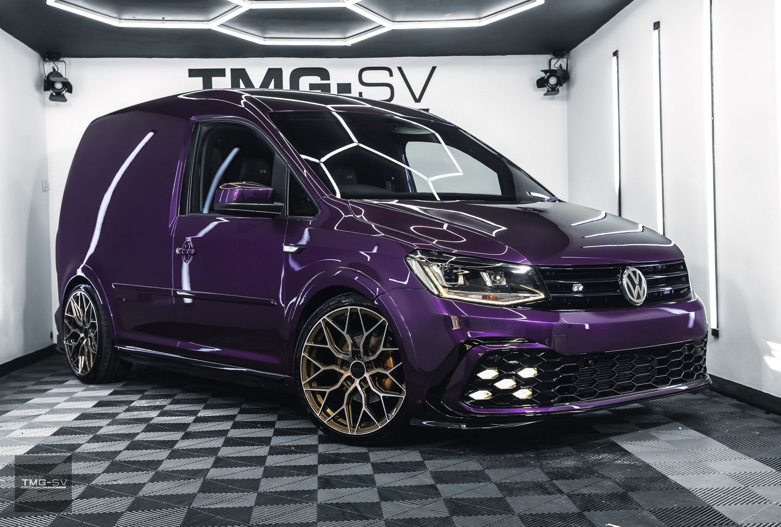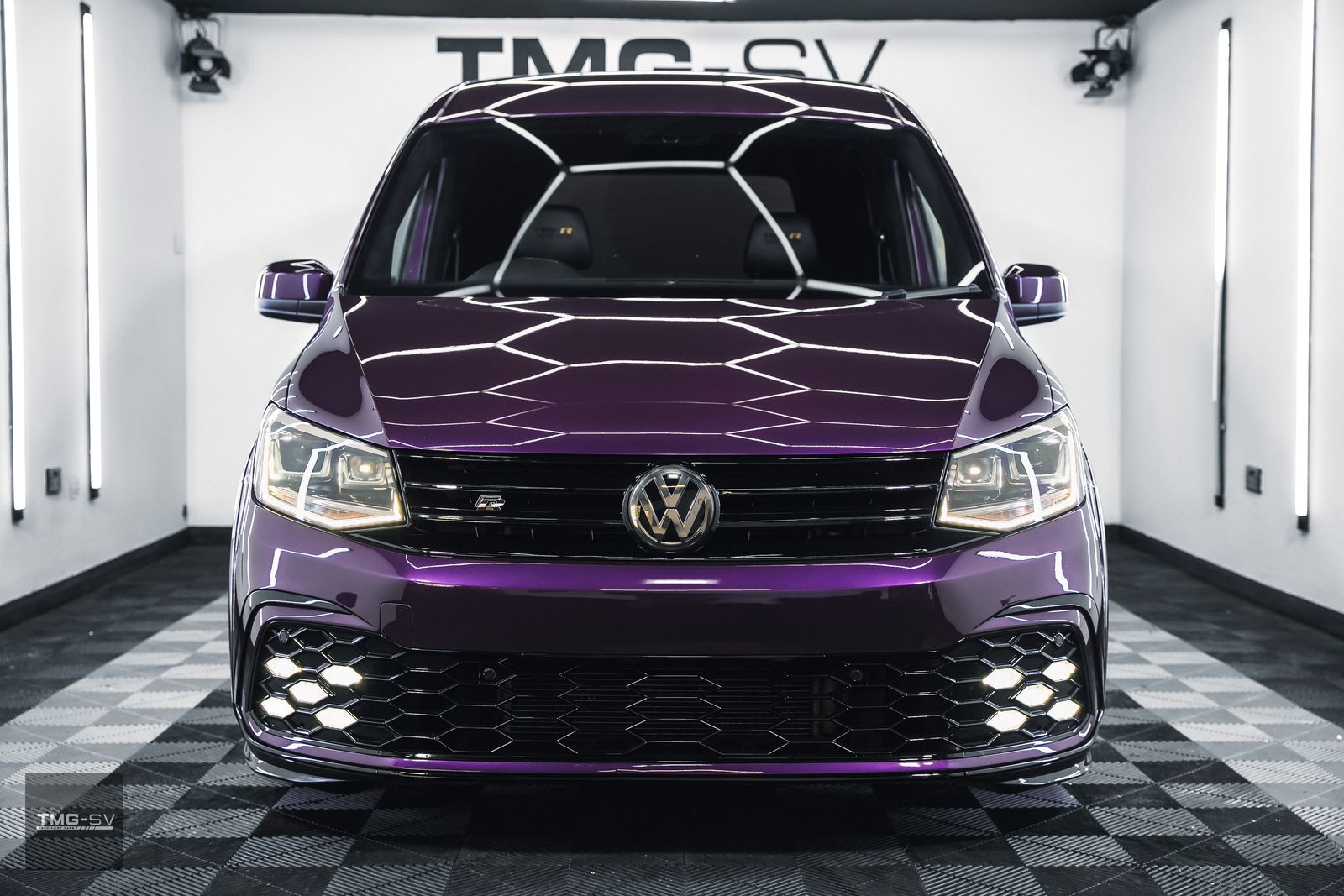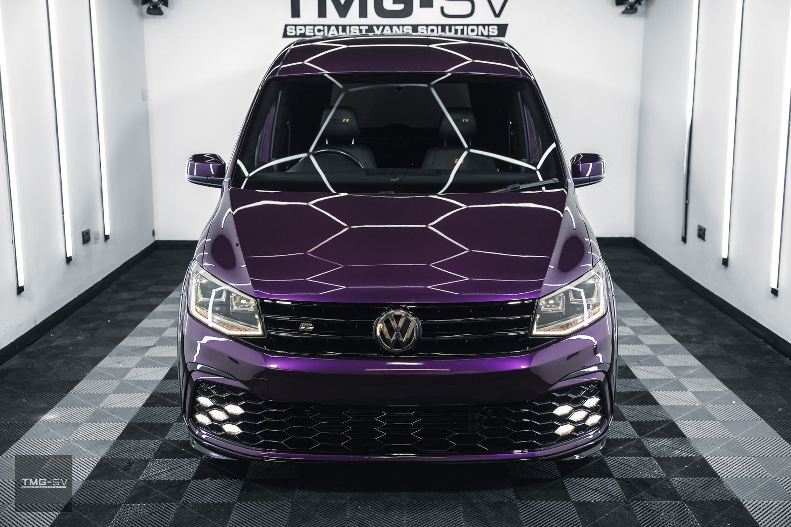 We are delighted to be offering our latest Custom VW Caddy fitted with our TMG Style pack. Volkswagen Caddy 2.0 TDI C20 Blue Motion Tech Euro 6 5dr, finished in purple pearl, with some fantastic extras.