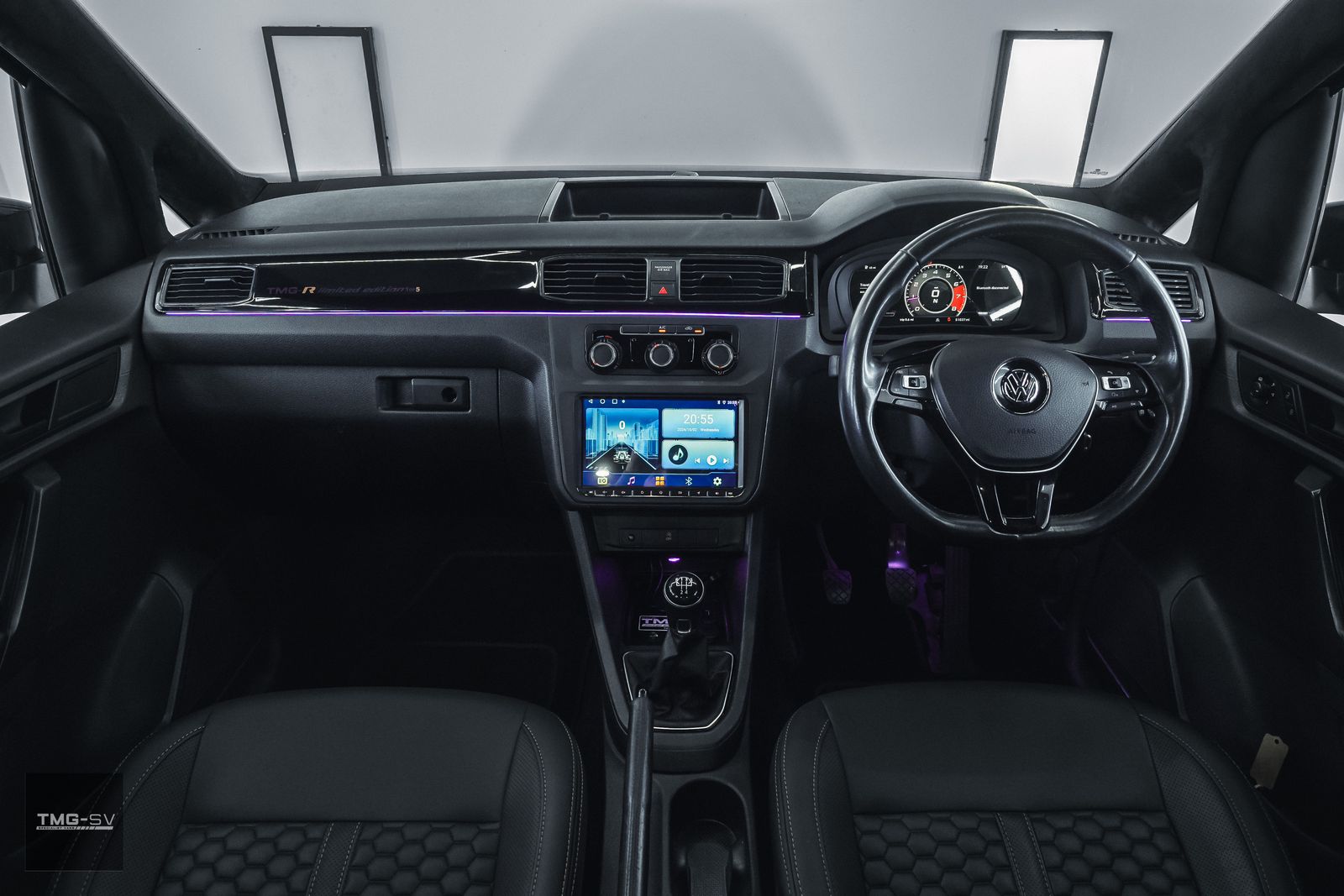 This van includes our standard TMG pack which includes, TMG Shadow pack, TMG aero pack, Bespoke TMG front seat upholstery, carpeting and alcantara to rear with LED spots, forged wheel plus tyre package and coilovers that are brand new and fitted by us. All grills in high gloss, spoiler, front lip, front bra, roof bars, android head unit, LED front and rear lights, TMG branding pack plus much more. We DO NOT buy vans that have been modified a number of years ago and brand them up as our own, all vans are newly built. For full specs please contact us.